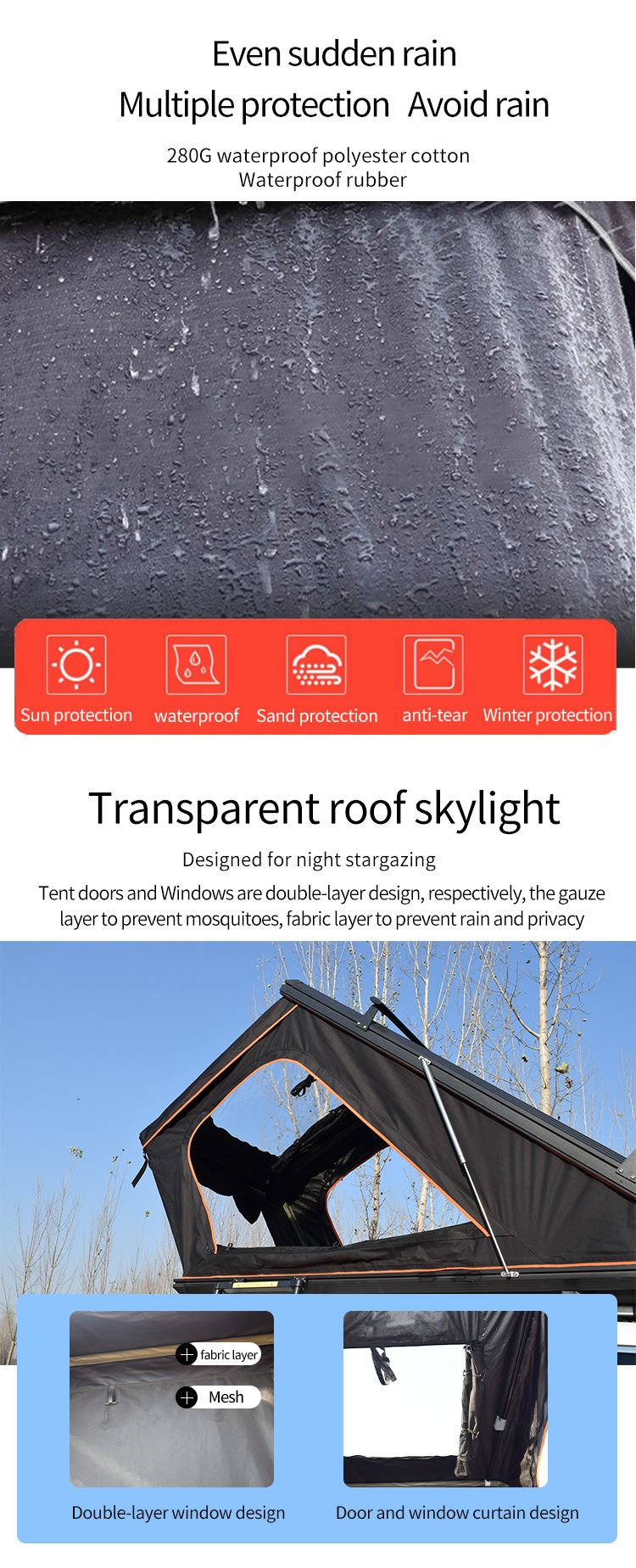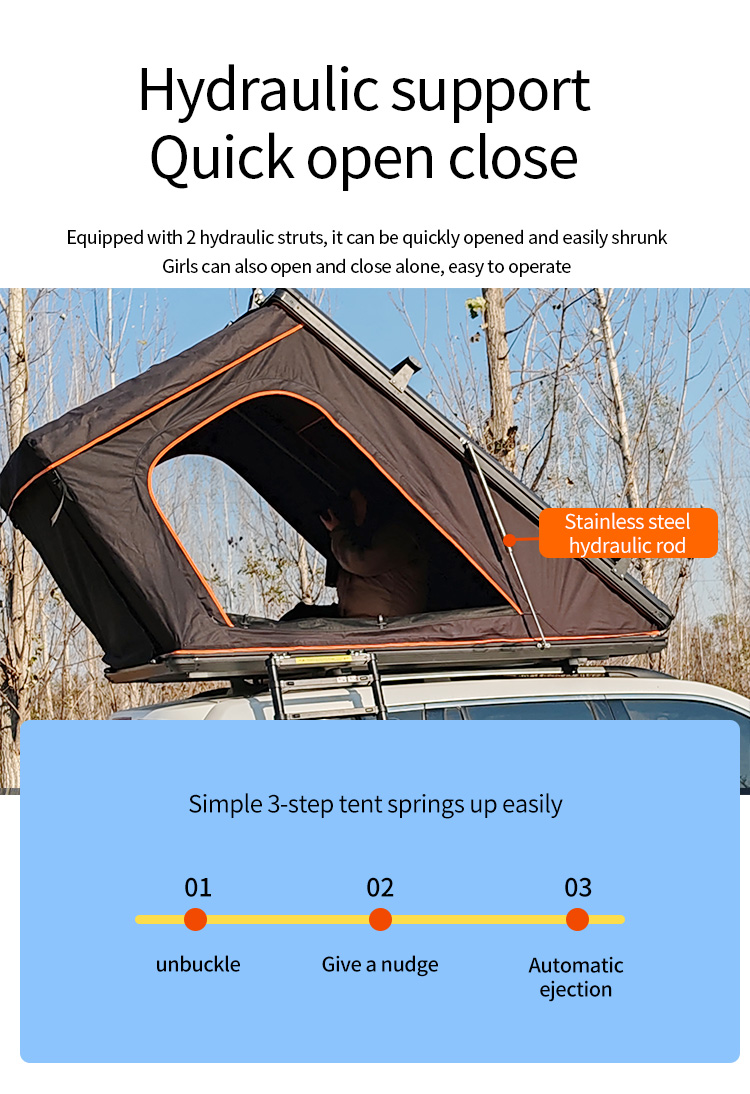 2024 Outdoor Camping 3 Person Side Opening Hardshell Aluminum Rooftop Roof Top Tent