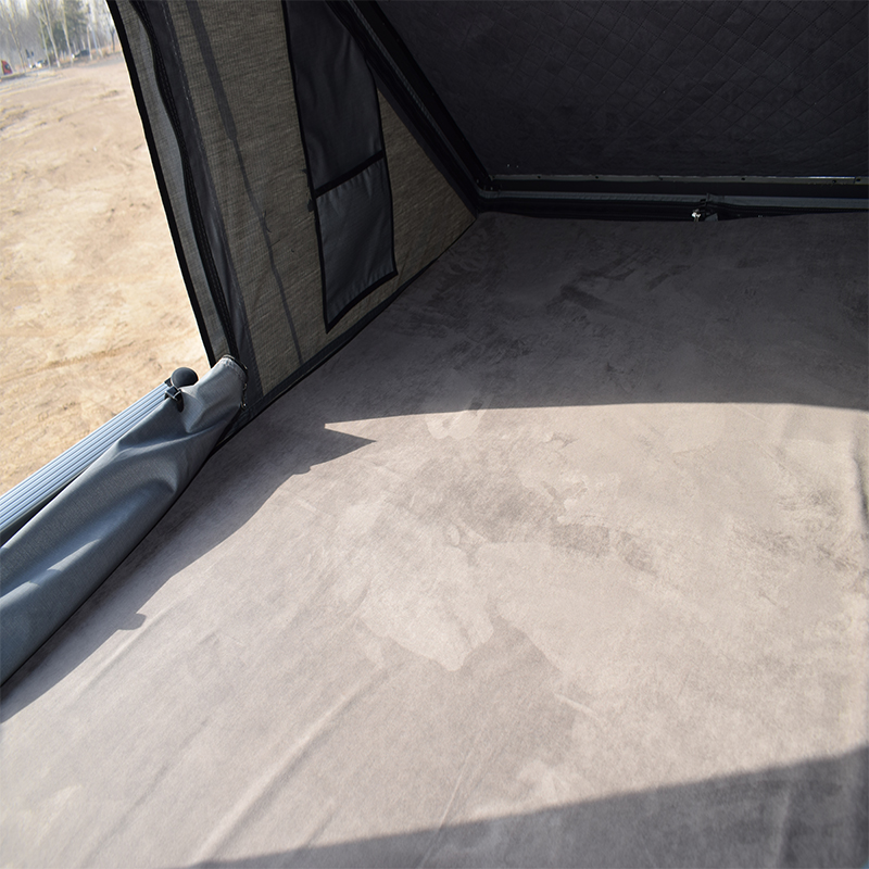 The shell is made of heat-resistant and high-temperature aluminum alloy. (Aluminum Hard Roof Top Tent)The fabric is a 600D polyester fabric, one of the strongest in the market. It is Flammable Resistant, as well as water, UV and Mildew resistant. It has stitched seams, excellent breathability, heavy duty zippers and even a skirt that fits over the edge of the shell base as to keep rain away from the inside.