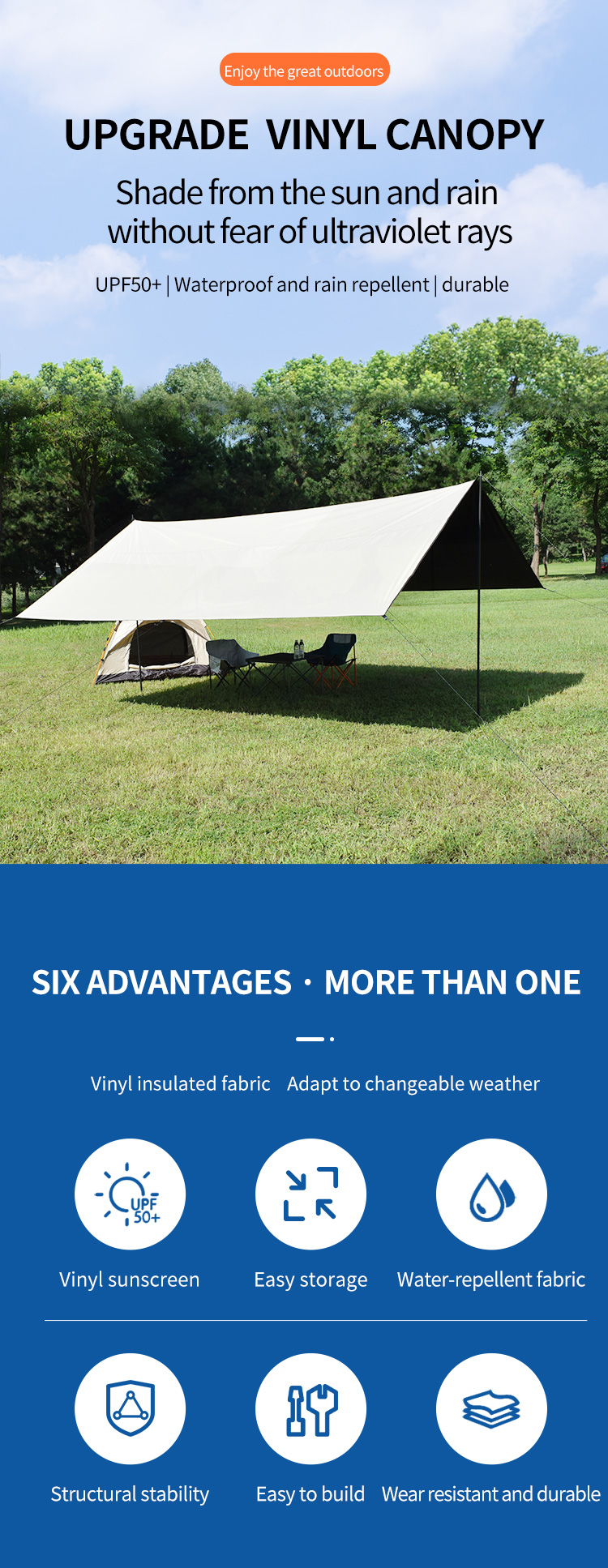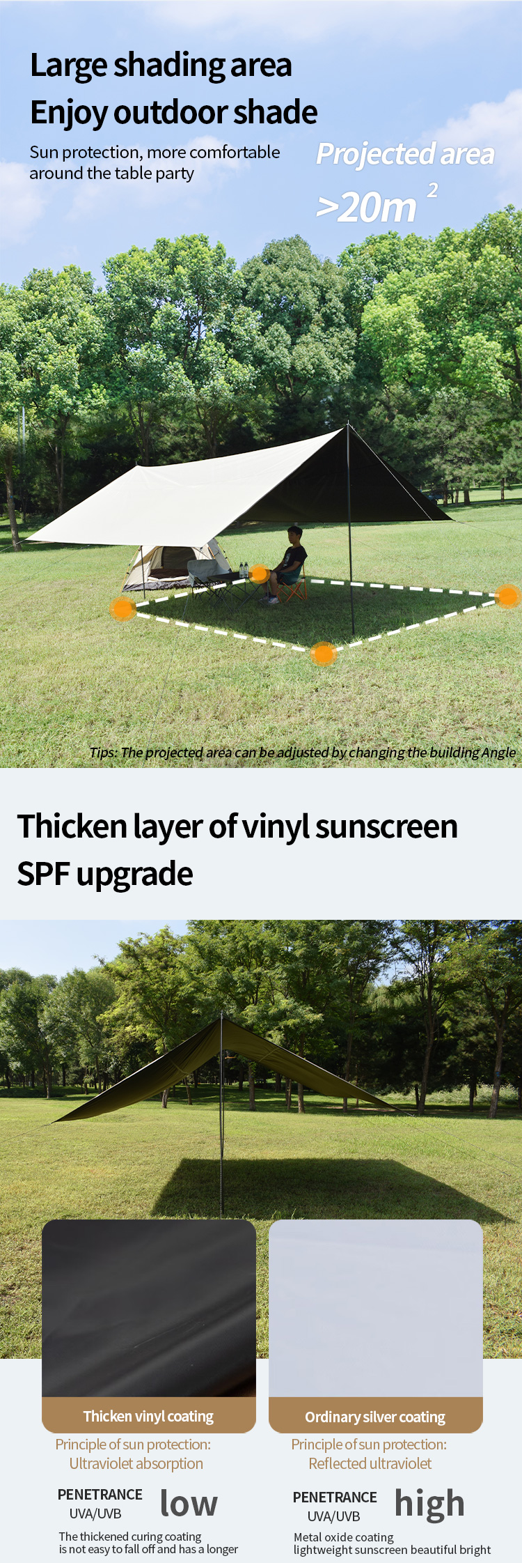 Sun Shade Awning Vinyl silver coated Canopy tarp tent